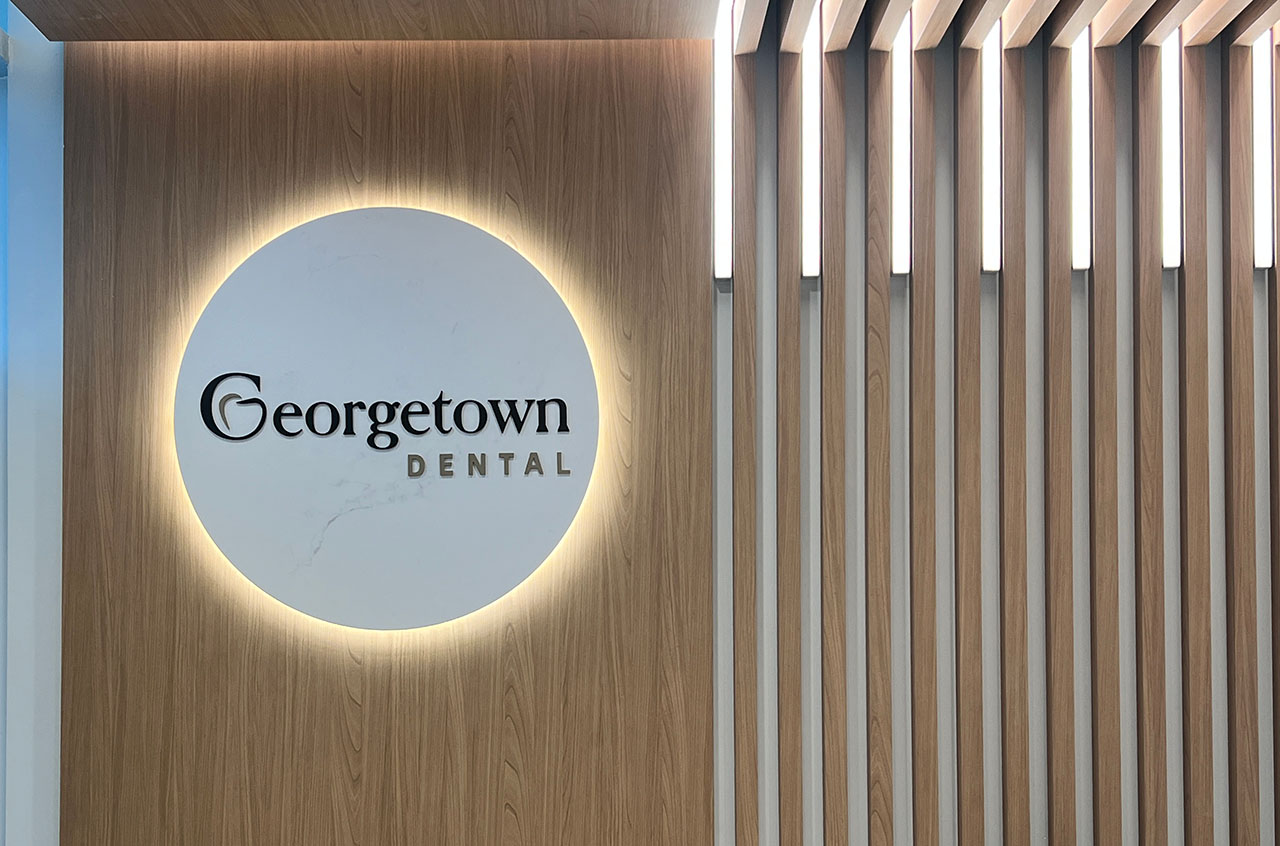 We created the reception signage using 1/2-inch thick clear acrylic,