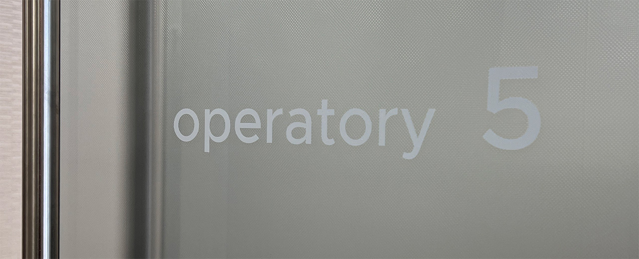 Matte white vinyl was used to install the names of each space onto