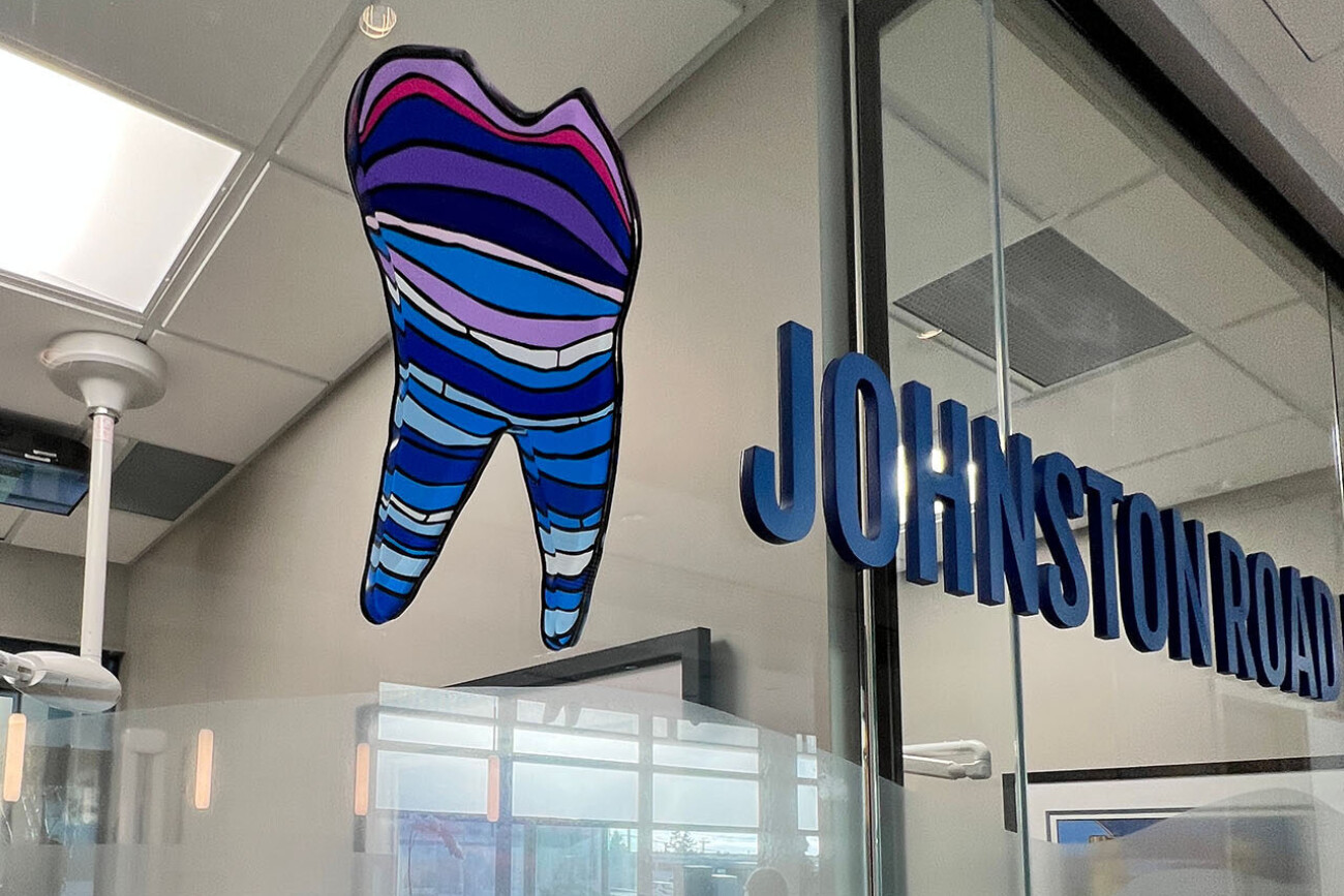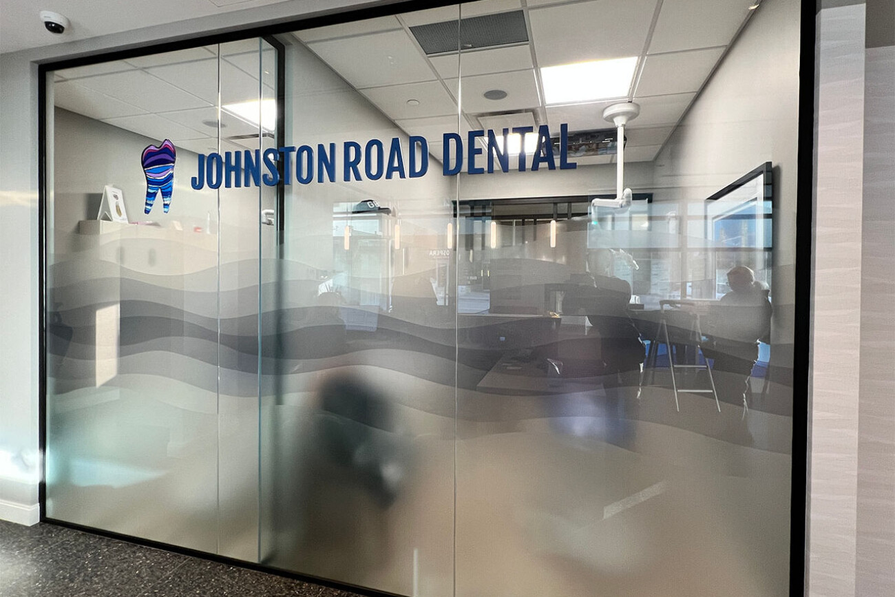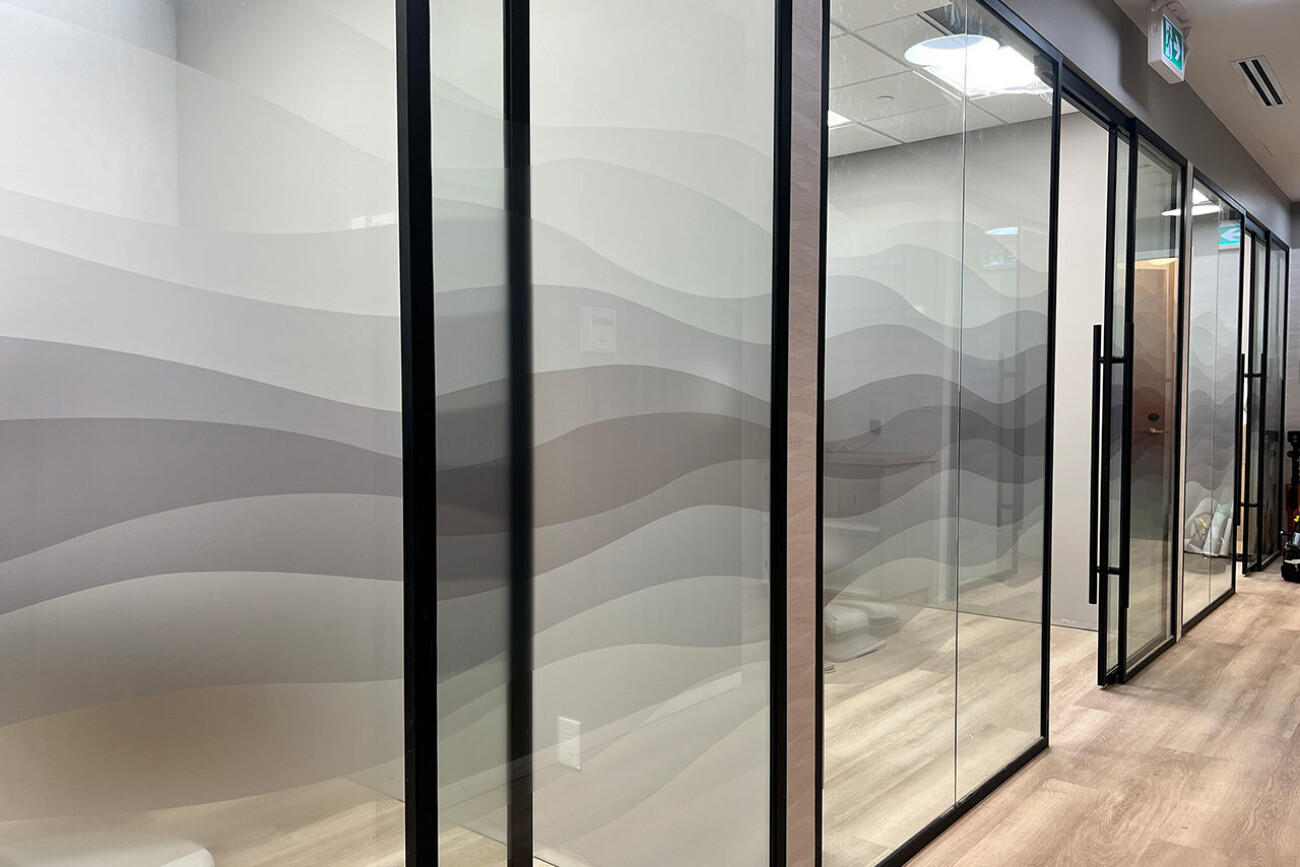 A custom frosted pattern was printed and applied to the clinic’s glass