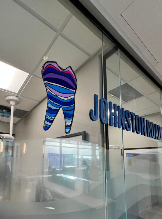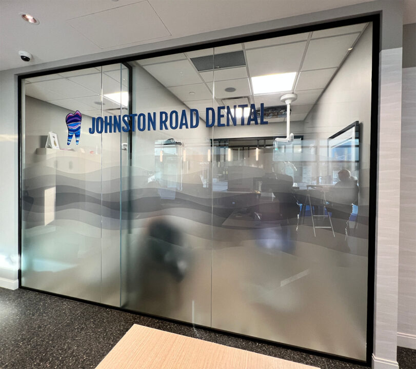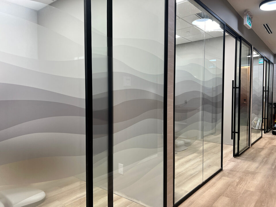 A custom frosted pattern was printed and applied to the clinic’s glass