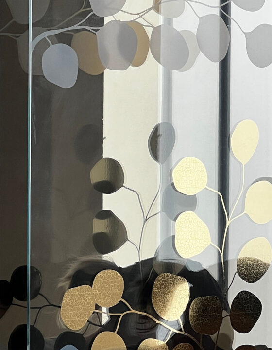 We printed the gradient frost to add an more eye catching design than a solid edge, while still adding high privacy for the different rooms.